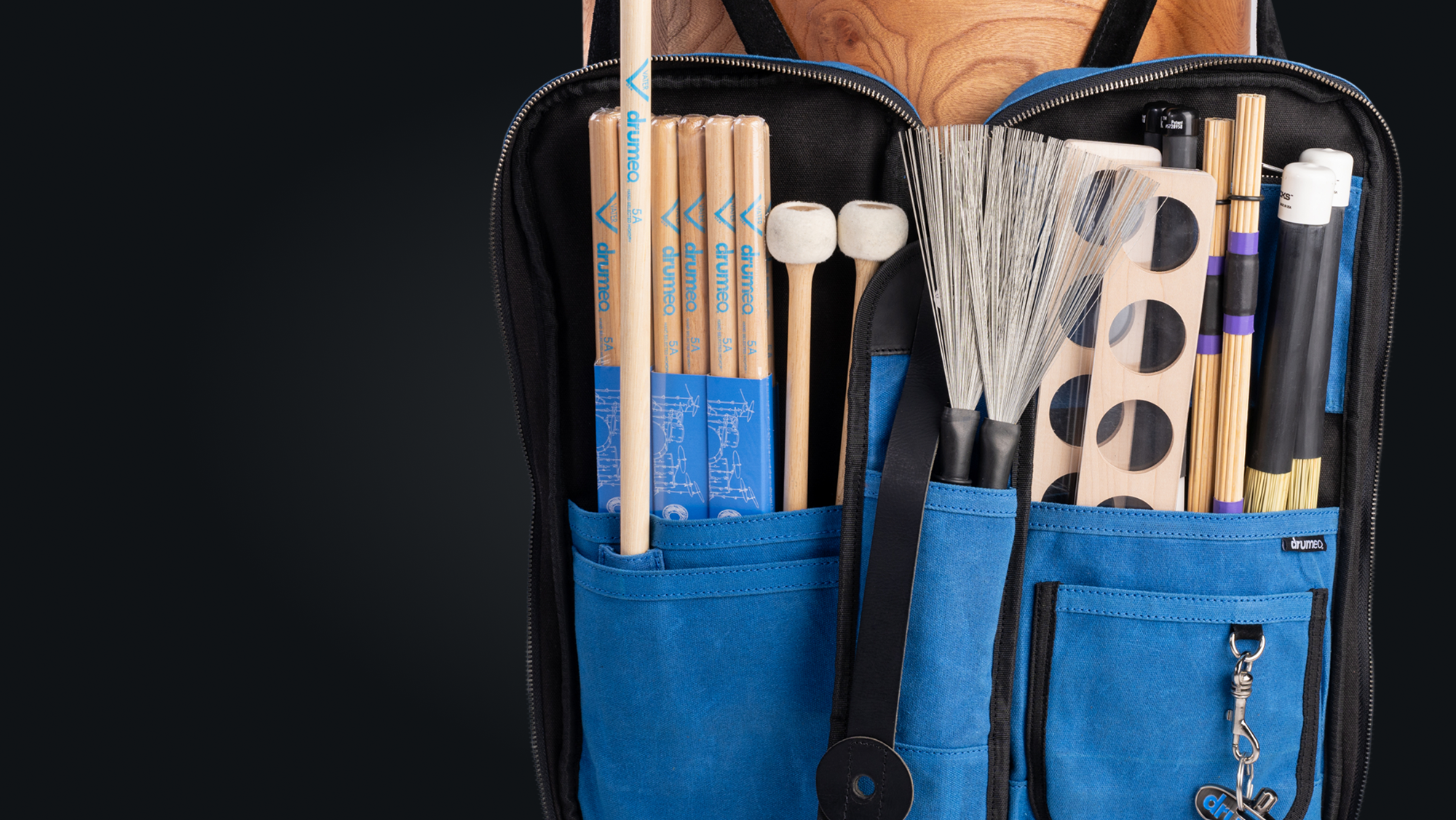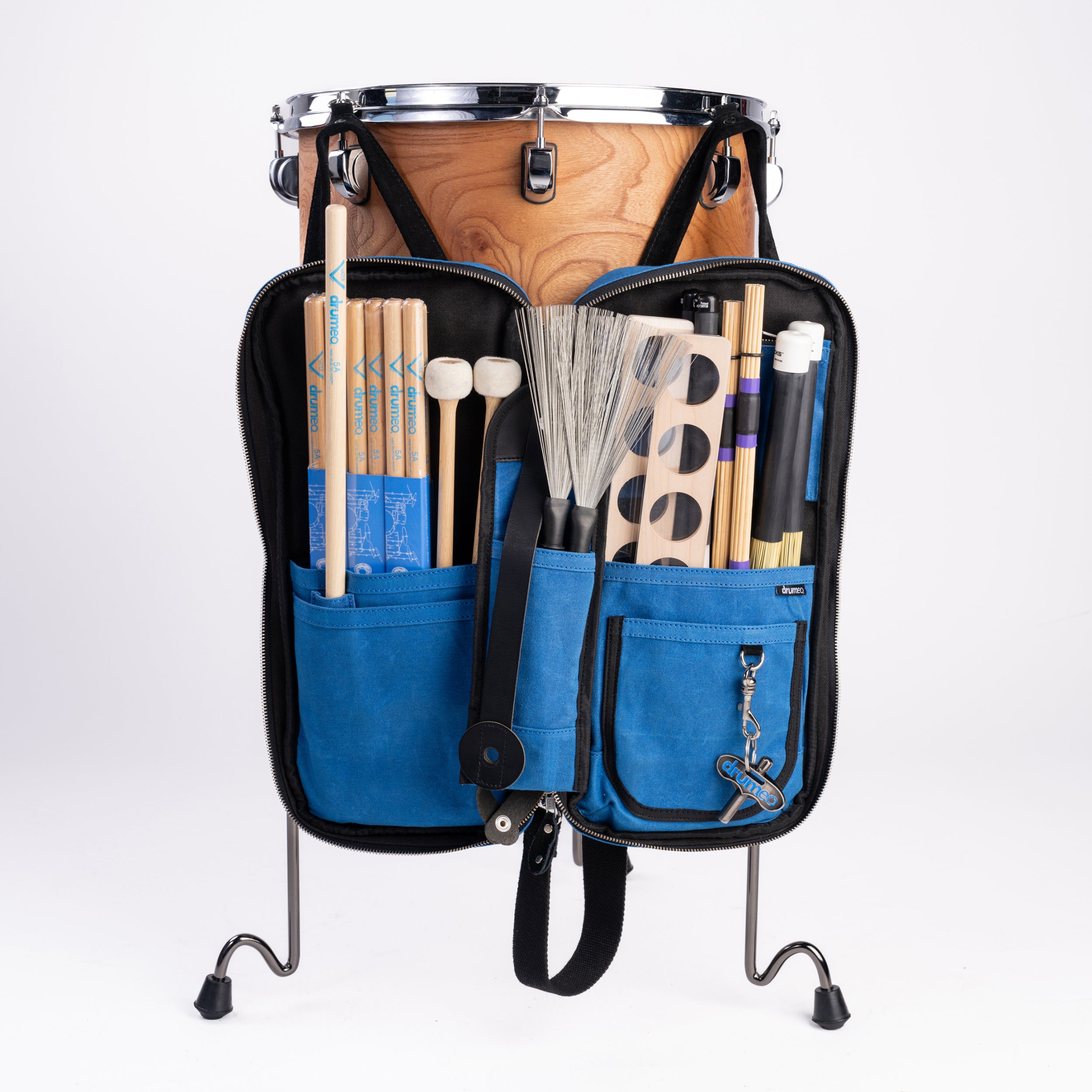 No string loops here—metal hooks attach securely to your toms so your tools stay right by your side.