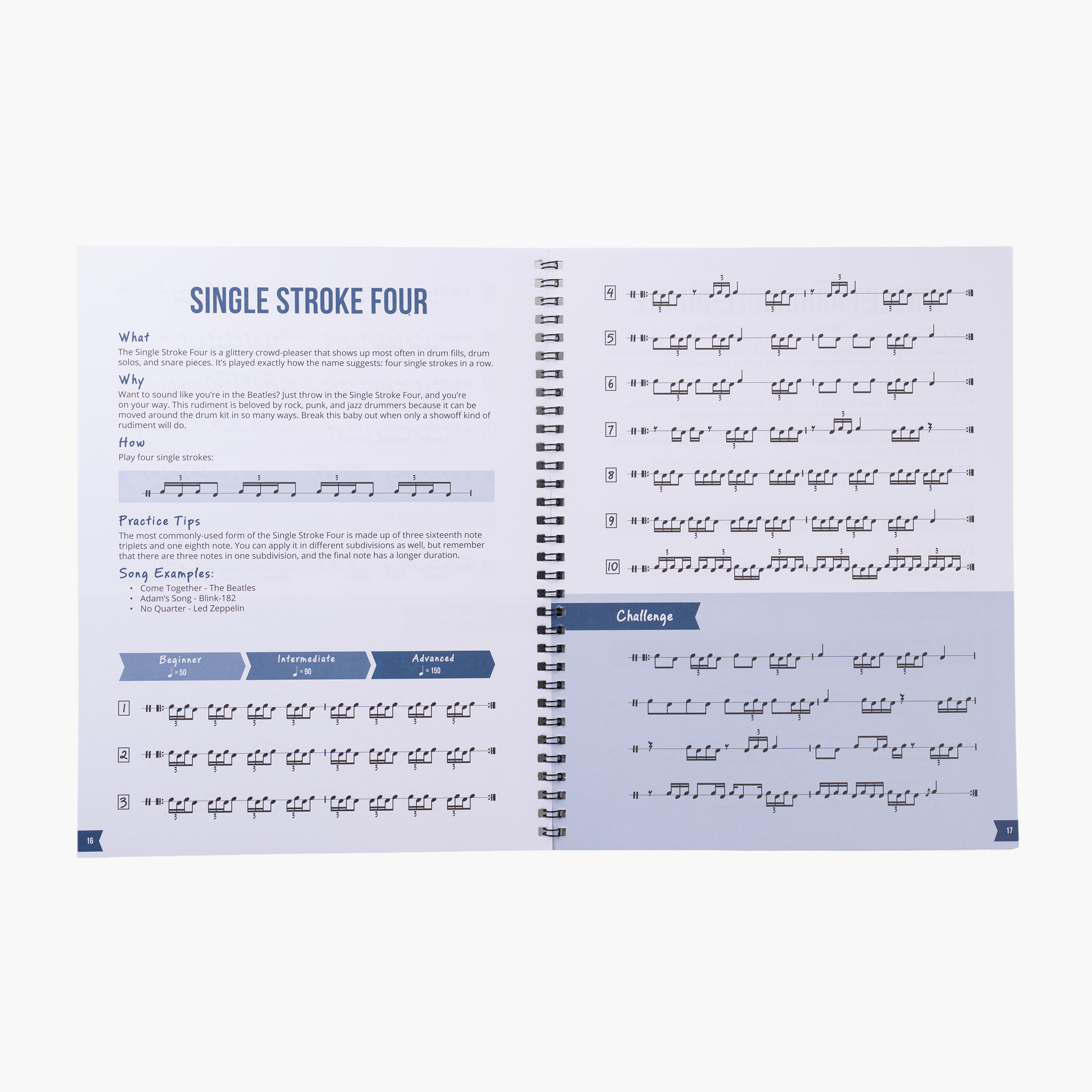 Each rudiment is clearly labeled, explained, and paired with real musical examples, so you’ll always know what to practice and why.
